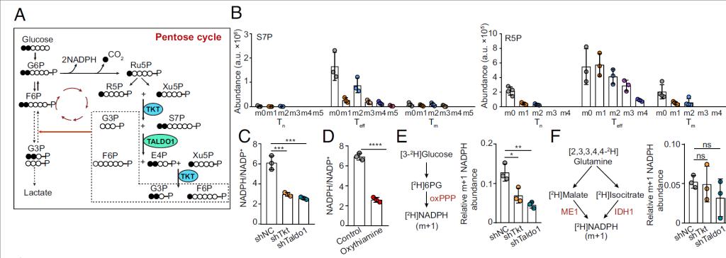綜上所述,該研究揭示了非氧化型磷酸戊糖代謝通路通過(guò)調(diào)控NADPH穩(wěn)態(tài),整合能量代謝、氧化還原平衡和生物合成的調(diào)控模式和分子機(jī)制,為理解CD8+T細(xì)胞的代謝基礎(chǔ)提供了新視角。